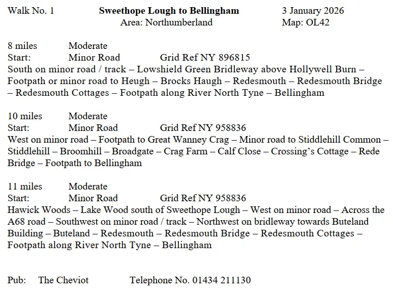 You can never tell what these walks will bring except the routes to Bellingham are in a very nice part of Nothumberland, think of the top right corner and you will not be far off. The way to the drop-off is via the A696 road and then turning off at Knowsgate. Just before Sweethope Loughs the road turns north but two of the routes start from here.